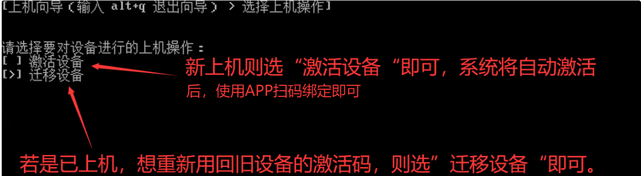 新上机请选第一项“激活设备”,系统会自动激活及扫码绑定;