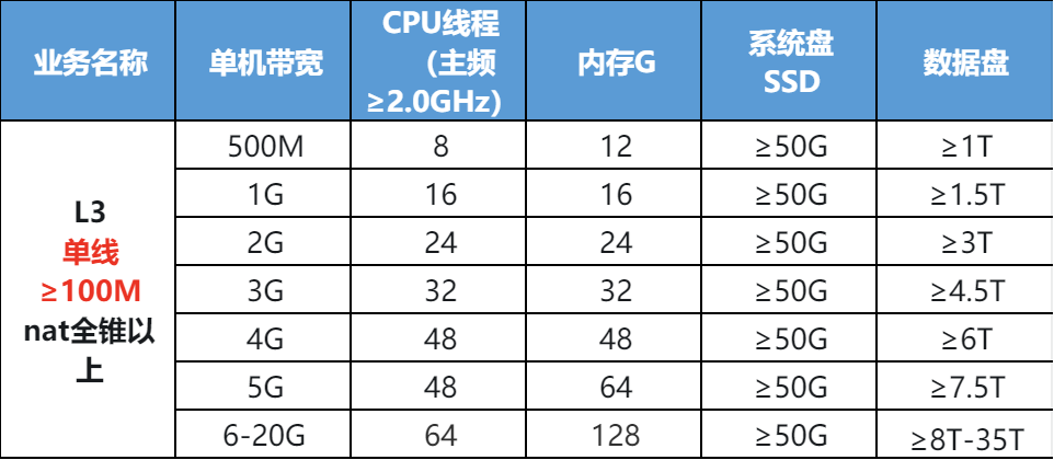 】单线上行≥100M,下行带宽为上行带宽的80%
